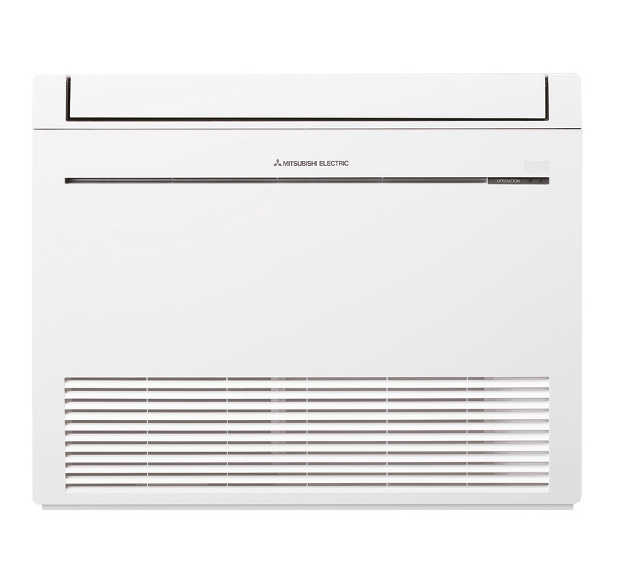 Mitsubishi Electric MFZ-KW35 ja Gree Console 35 ovat molemmat tyylikkäitä, Pohjolan vaaleisiin sisustuksiin sopivia seinää vasten, lattian rajaan asennettavia ilmalämpöpumpun sisäyksiköitä.
